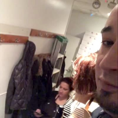 A man at work scares his woman coworker repeatedly. He sneaks up behind her and yells, and she screams. Multiple videos put together in montage