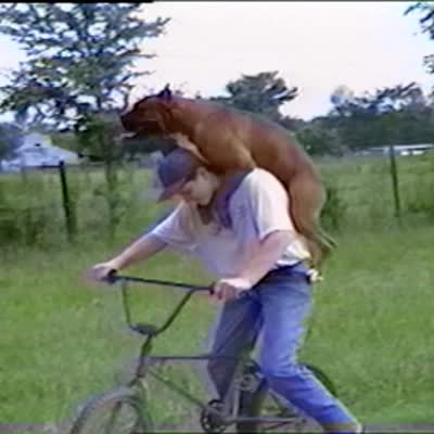 Dog On Bike. Dog carried on bicyclists back. (montage)