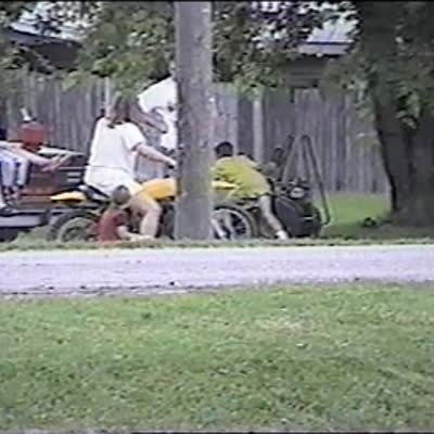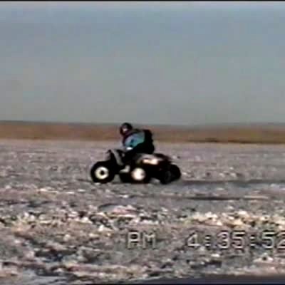 2 boys on a 3 wheel ATV motorbike run over Dad with camera