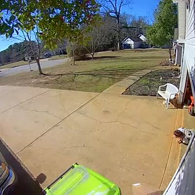 A teen boy throttles an electric bike / motorcycle and it hits the front door. Security footage. Ring.com.