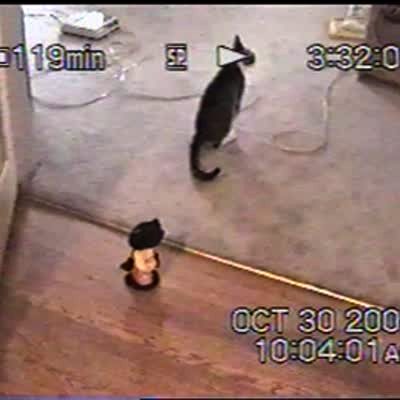 Cat attacks Halloween toy. He attacks it in a very weird manner. Funny movement