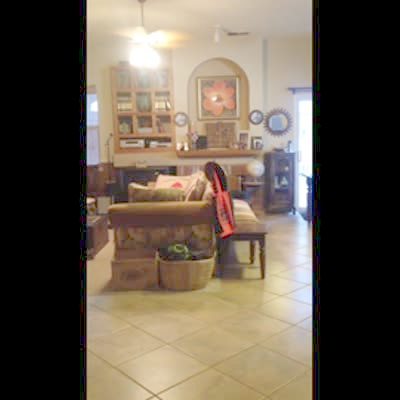Woman gives a mock MTV Cribs tour of her house. She pulls a projection screen down from the ceiling and the whole thing comes crashing down on top of her.