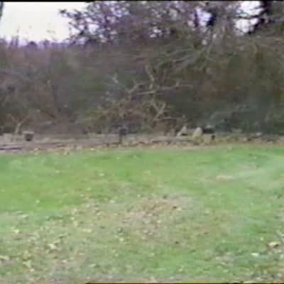 A senior man on a scooter rides down a hill into a yard accompanied by his family. Around 1:35 he attempts to drive the scooter up a ramp onto a porch but he drives over the porch and crashes through a wooden fence and falls over the other side of the porch.