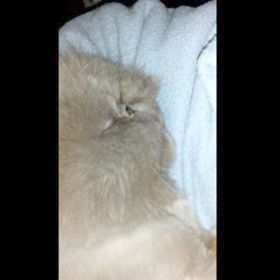 A Persian cat sleeps and snores indoors with its tongue sticking out.