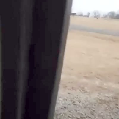 A man tries to feed a camel at a drive-through safari when an ostrich pushes it aside and sticks its long neck inside the open window of the car. The man holding a cup of food pellets is startled and screams.