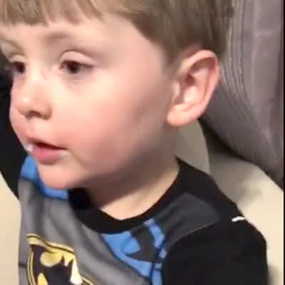 A woman asks her tot son what he ordered on her phone and he admits to ordering an XBox, 102 toy Nerf guns, a race car bed for his dogs, enzyme pills and 5 bags of brown sugar.