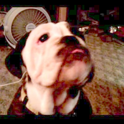 Man filming asks bulldog dog if he should be given a treat. Bulldog nods its head numerous times. Cute