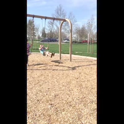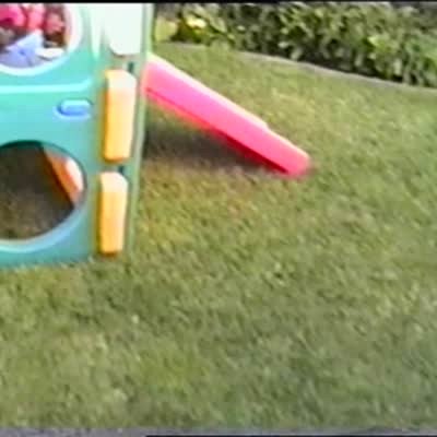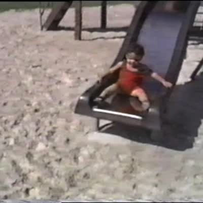 Tot nose-dives off slide, sister comes down after him and crashes into him.