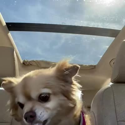 At :30, a Pomeranian dog slips and falls face first into a puppuccino and gets whipped cream all over her nose in a car.
