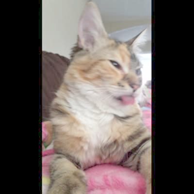 Black and white cat tries to stand up and seems to be looking up at nothing. Odd.