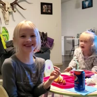 A little girl talks to the camera and is interrupted by her long fart. She carries on like nothing happened.