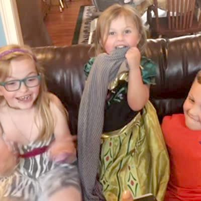 A young boy screams excitedly when he gets a present he wants for Easter and asks his dad "Am I gonna cry right now?!"