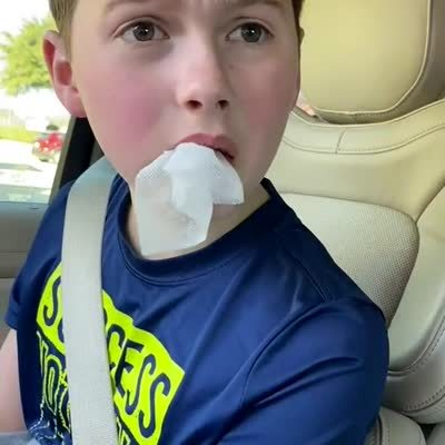 A teen girl cries on her way home from her wisdom teeth removal. She thinks they took her tongue and says "Now I can't kiss."