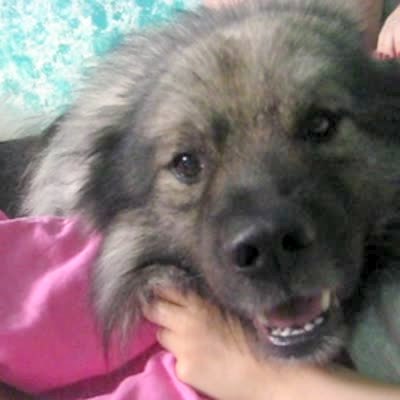 Black dog makes a noise when he's told to be sad. Dog also barks when he's told to tell a story. Silly pet tricks.