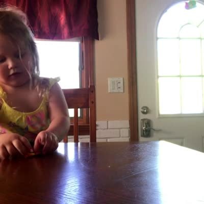 "Temptation Challenge Challenged" A mom does the snack test to her tot girl and she says she will pet the candy and touches it as she waits for her mom in a house.