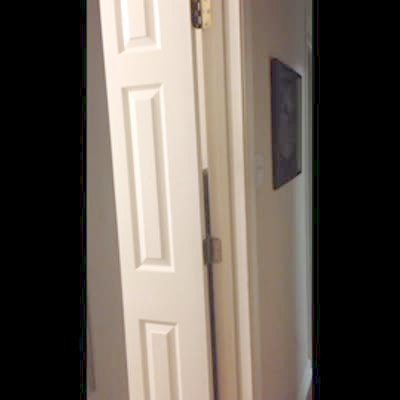 A man sings indoors as a woman waits outside his room to scare him. He calls for the woman repeatedly and she jumps in and says "What!" scaring the man and causing him to fall backwards in his chair.