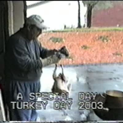Man deep fries a turkey and when he puts the turkey into the oil the whole grill bursts into flames. Fire Thanksgiving.