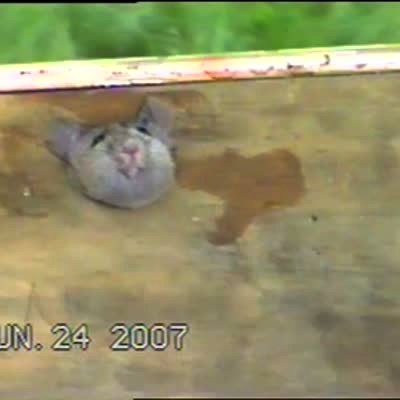 Mouse has its head stuck in a hole & man pours olive oil on it to try & get rodent out. Then he uses scissors to free the mouse.