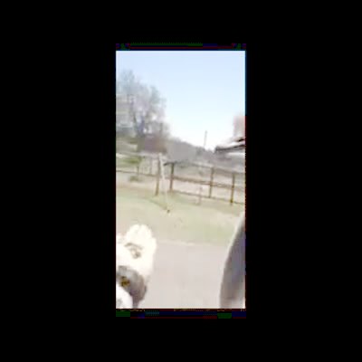 An ostrich runs through a backyard. As it passes the home owner drops a cleaning rag in disbelief. Security footage.