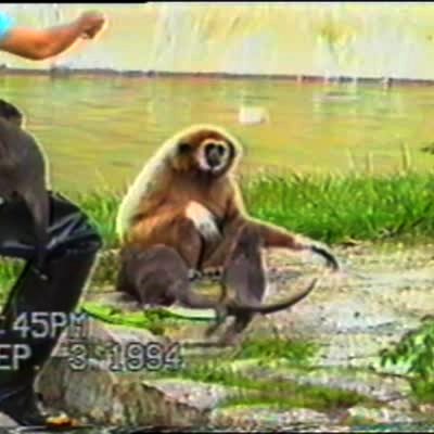 Monkey gets scared when otters chase him for food zoo