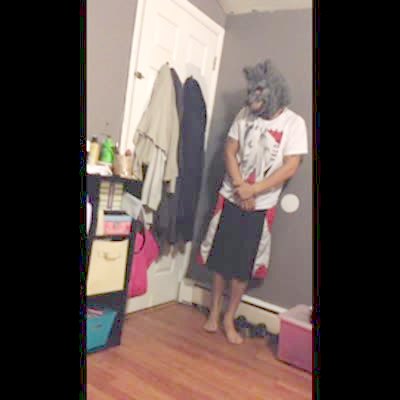 Teen boy dressed as Michael Myers comes out of the closet to scare teen girl, girl screams. Practical joke, Halloween.