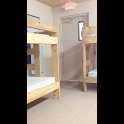 Two young brothers punch a security camera in their bedroom, then an alarm goes off, and the boys run out of the room. Security footage.