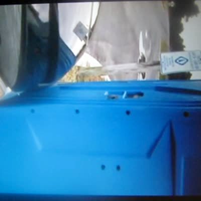 Teen boys put colored Post-It notes all over their dad's car as an April Fools practical joke. Taped from window upstairs. Man drives the car out of the garage.