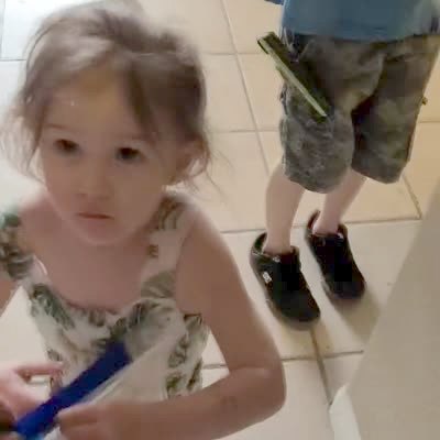 A tot girl says a bag of cotton balls are marshmallows in the house. When she tries one, she spits it out and runs away. Practical joke.