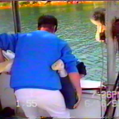 WOMEN OVERBOARD Woman holds girl's legs to ease her into water, they both topple off boat