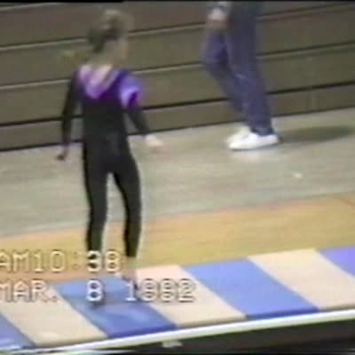 A teen girl in a leotard spins around the uneven bars in a gymnastics gym but loses her grip when she collides with a large pad and falls.