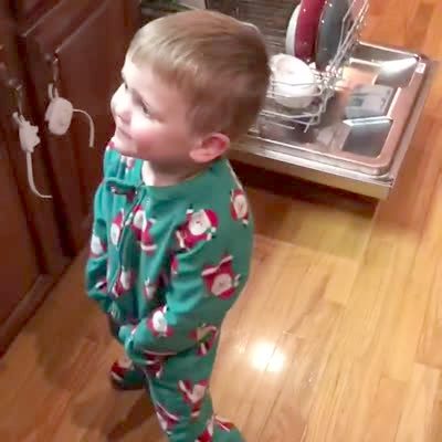 Tot boy (3 years) too excited about Christmas to go to the bathroom. He pees in his pajamas. Dad asks if he has to go ... Kid says "not anymore."