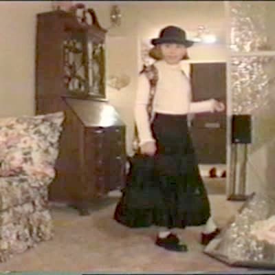 A woman joins her family on a porch, but she trips and falls and pulls her father's pants down. Security footage.