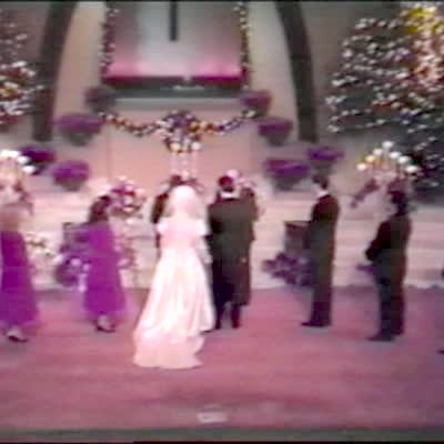 Man faints during wedding ceremony. He knocks into the bride & falls on his face, goes down straight as a board.