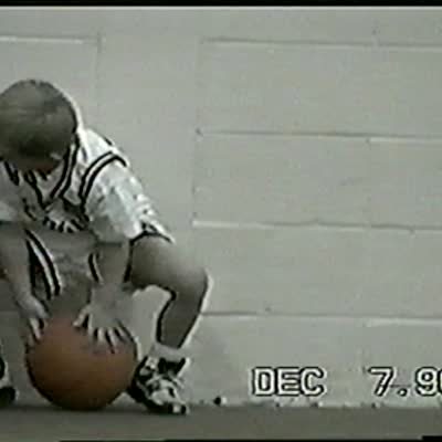 2 young boys at basketball game pat each other on the back and 1 gives the other a little kiss.