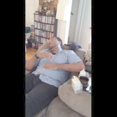 "Invisible Baby Burper" A new dad thinks he's holding his crying baby and pats his hand at the air to sooth the baby while his wife holds the actual baby next to him.