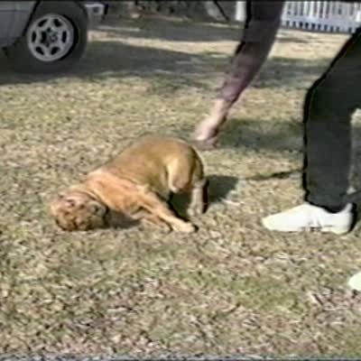 A tot girl and man pat and play with a dog laying on its back on the floor. Then dog sneezes and surprises everyone.