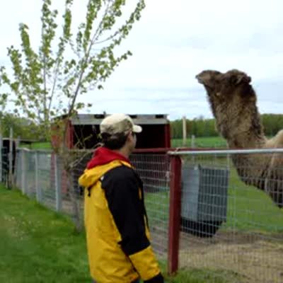 A camel rips out a chunk of a woman's hair and eats it at a zoo.