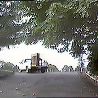 Three men struggle to lift a piano into a truck bed, and once it's on the truck the piano flips and falls out the side of it. Home security footage.