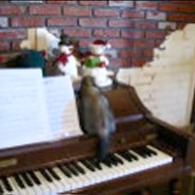 A woman plays the piano and a Cockatoo bird nods its head up and down in tempo. When the song really gets going, the bird gets very animated with its dancing.