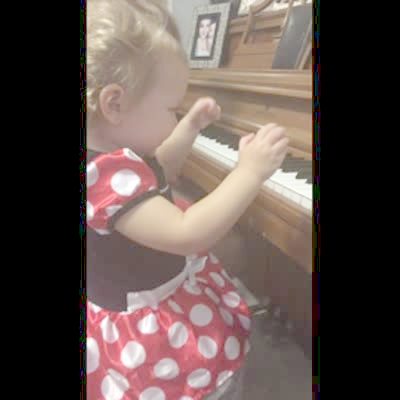 A tot boy stands on a piano seat in the living room and requests to Alfonso that he get more "piano videos." The boy then plops onto the piano keys.