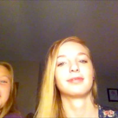Teen girl singing and playing piano gets scared and screams when friend filming sneaks up on her in bedroom.