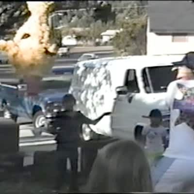Pi�ata sets off sprinkler system. At school. Kids run, scream