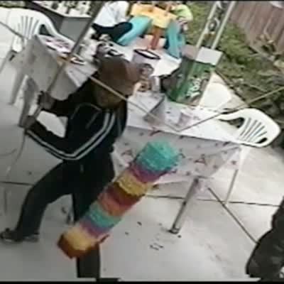 PI�ATA. Dad gets hit by girl with bat in groin; b-day