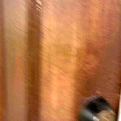 A doggie door is missing on the front door of a house. The camera woman asks two pitbull dogs where the doggie door is. The second dog has the doggie door stuck around its neck after ripping it off the main door. The pitbull dogs run off.