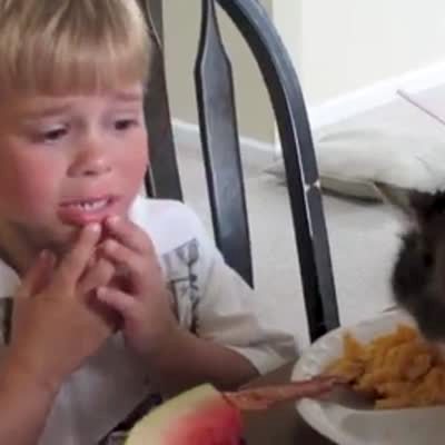 "Clever Chocolate Cheater" A woman plays the temptation challenge with a young boy. As soon as she walks out of the room, the boy eats all the chocolate chips on the plate. Then he pours more chocolate chips from a container onto his plate.
