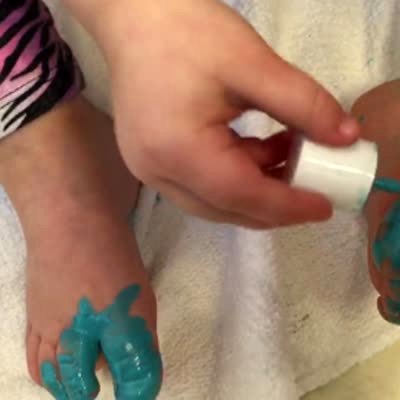 A tot girl cries because she covered her Barbie in nail polish, and then she claims the Barbie told her to do it indoors.