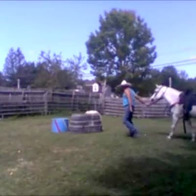 Teen country boy tries to mount horse bareback and falls off the other side.