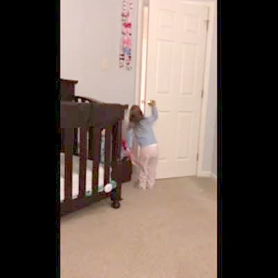 A young girl rides a rocking horse and repeatedly says "I gotta slow down, Poppy slow down," but she does not slow down and eventually she just falls off.