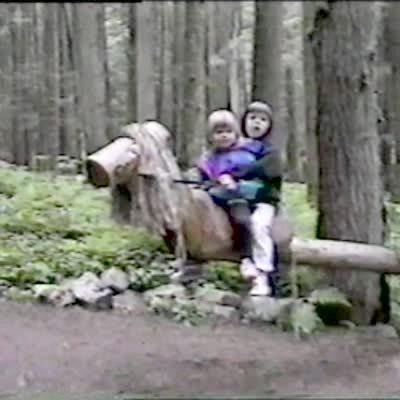 Kids fall off wooden horse after dad says "wave good bye" and they do