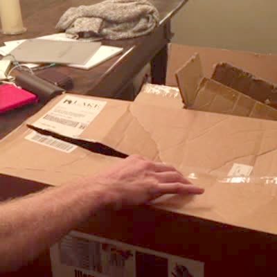 A young boy hides inside a cardboard box. When his father gets home from work the man says "I got Taco Bell" and the boy pops out of the box with excitement.